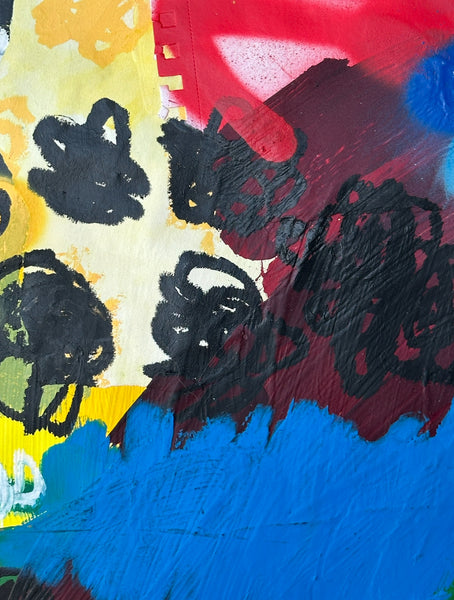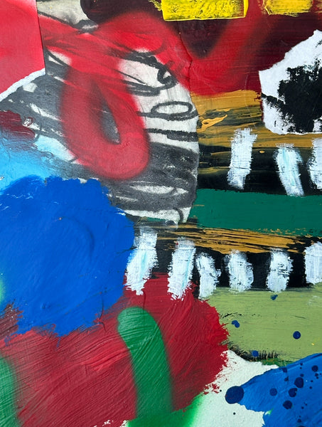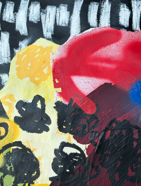 18x24 in. Original abstract painting, acrylic, collage, spray paint, pencil on 110lb(180G SM) fine art paper.